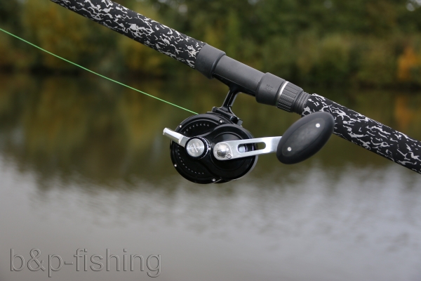 Diese Multi hängt wie eine Stationärrolle unter der Welsrute, worus sich eine optimale Gewichtsverteilung ergibt. Die Schnur muss zum Verlegen nur kurz mit dem Zeigefinger angetippt werden. Im Vergleich zu herkömmlichen Multirollen wird so ein sauberes Wickelbild fast schon von alleine erzielt.